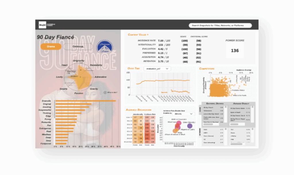 Elevate your content by knowing its emotional drivers; our data-set & dashboard that quantifies the “emotional connections” -landscape and contextual signature of 10,000 entertainment assets against 14 points of engagement.
