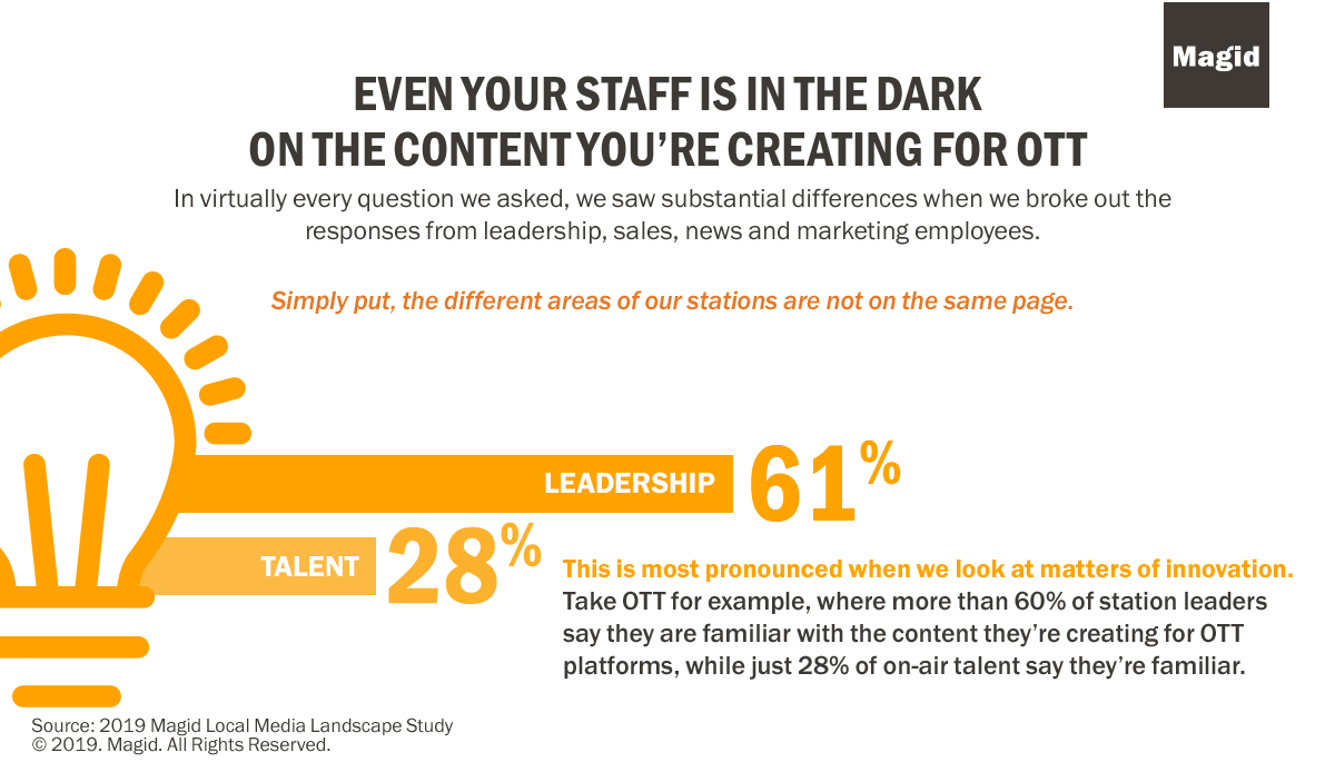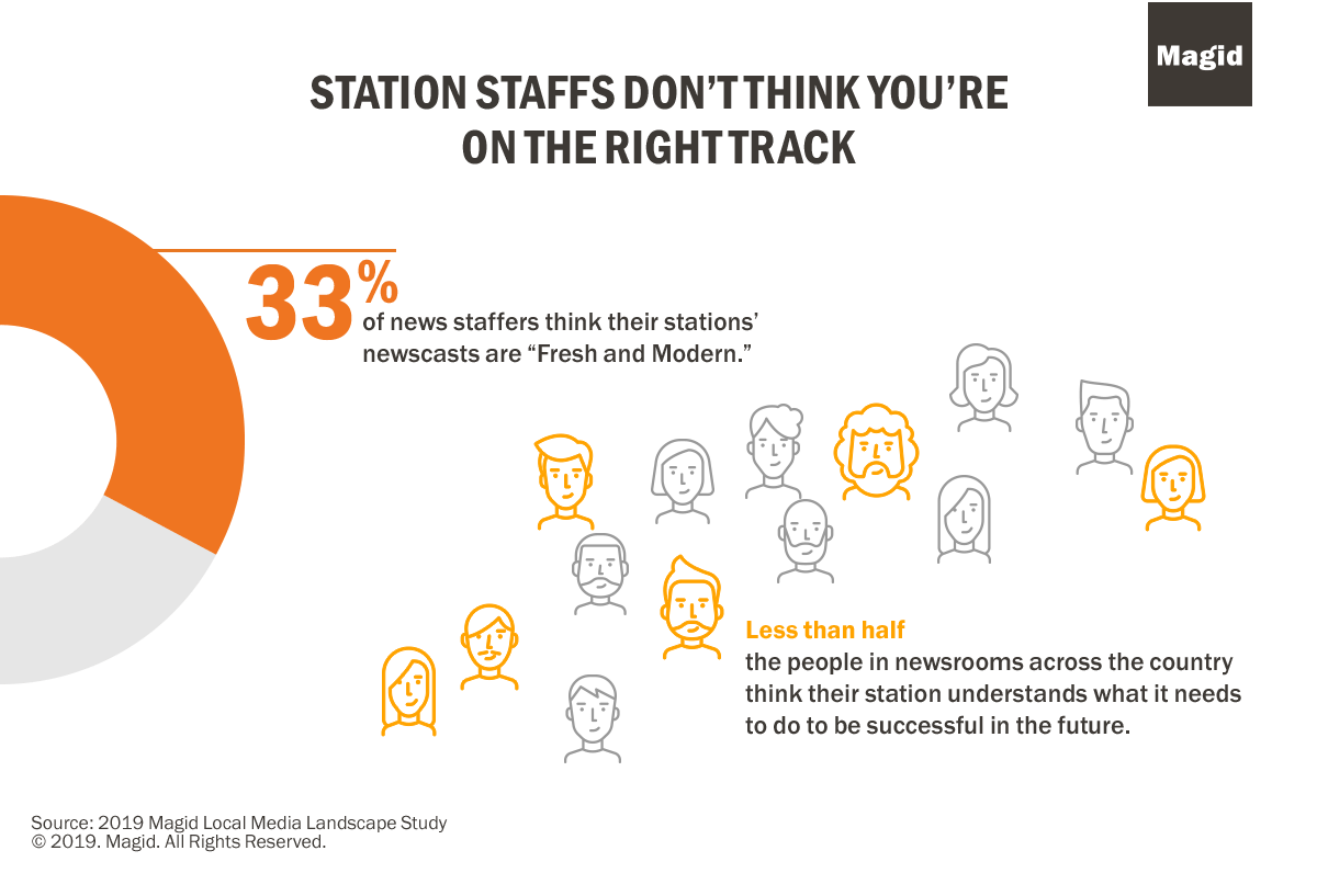 In the coming weeks, we will share our key findings from this process in a series of posts that look at the path forward for your brands and content, the keys to engaging local advertisers, and the right approach toward platform expansion. But first, we have to address perhaps the most significant and troubling observation from the entire process: Employees don’t think our industry is on the right track.