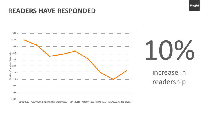 And it works. Working with a local daily, Magid helped generate increased engagement and audience growth 10% by applying this principle, as per below.
