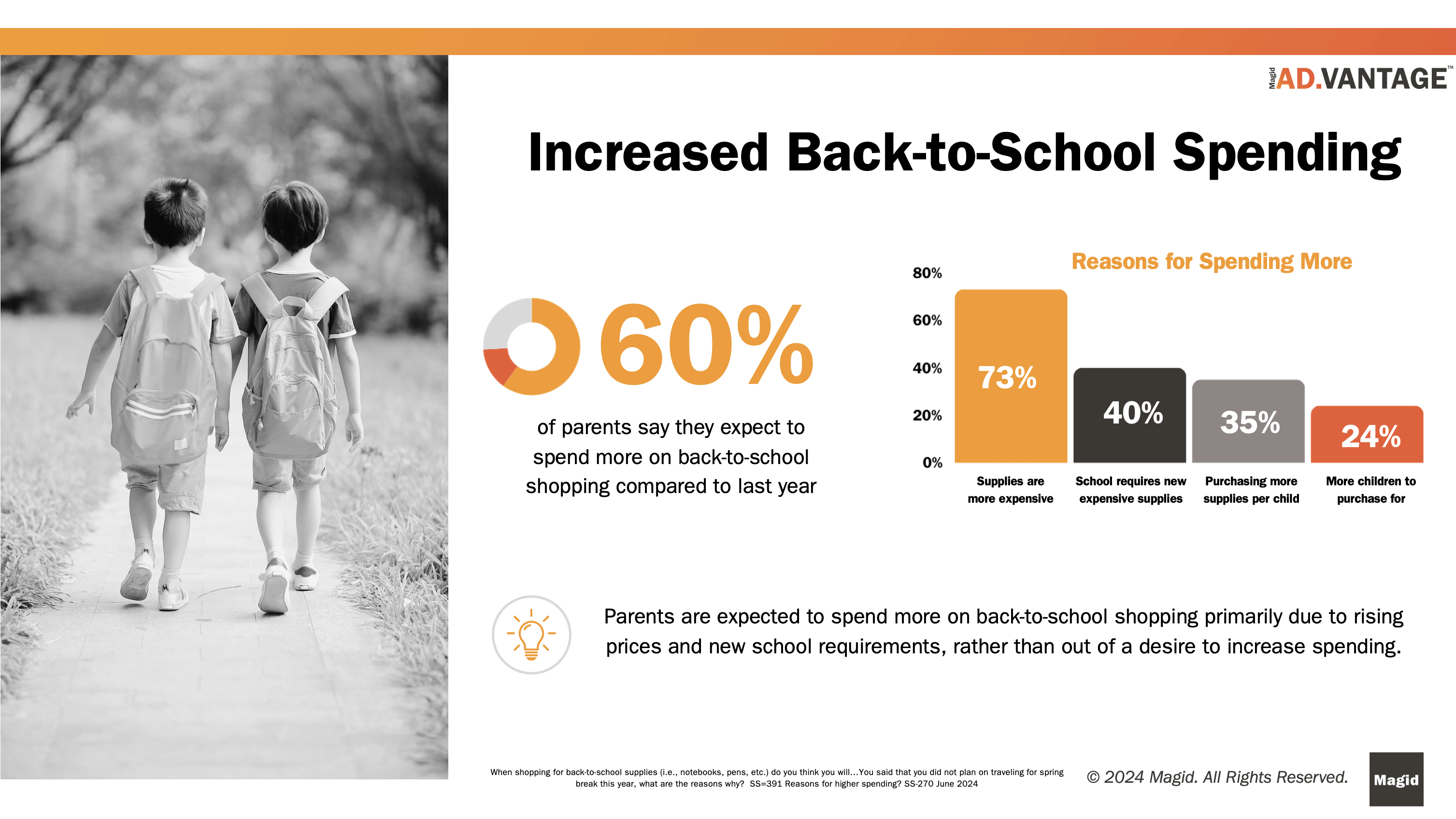 The Magid Minute Your Executive News brief for July Insight of the Month – Gen Z: Minds on the Money: Gen Z demands real value, transparent communication, and immediate rewards from brands, with a focus on gamified shopping experiences. Inflation Softened in June: Overall prices decreased, boosting consumer confidence. Details on price changes include airline fares down by -5% and gas prices down nearly -4%. Navigating “The 45-Divide”: Significant differences identified between Boomers/Gen X and Millennials/Gen Z. Explore these insights with our interactive menu. Olympics: Use our AD.VANTAGE AI tool to generate content with Olympics-sized insights. Back-to-School Spending on the Rise: Majority of American parents are forecasted to increase their back-to-school spending. Magid AI Difference: Clients benefiting from our sophisticated intelligence and workplace solutions. We alleviate the concerns raised with others – algorithmic bias, data security, etc. News from the Games Team: What makes a great game? Play with friends and crossplay across platforms – two of the findings from the “Generation NEXT: The Gamers of Today and Tomorrow” study. In the News: Target teams with Shopify to enhance online traffic and customer engagement. Goodr to double its product portfolio targeting new demographics and sports. Insight of the Month