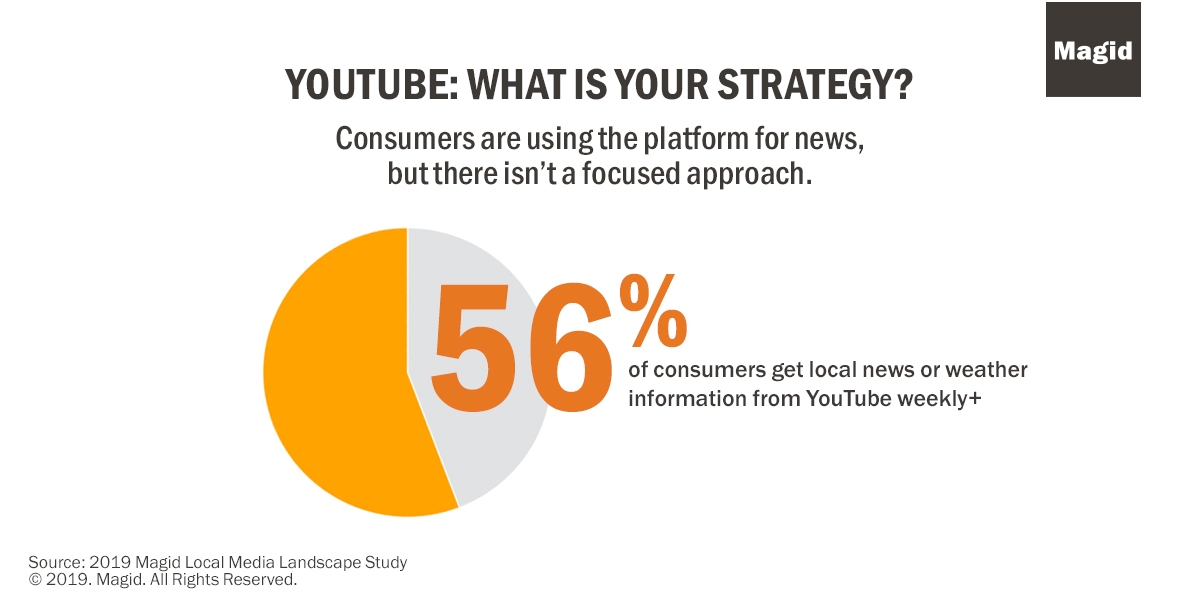More video is consumed on YouTube than any other platform, yet it traditionally has not been prioritized in newsrooms. That needs to change – more than half of consumers get local news or weather information from YouTube at least once a week.